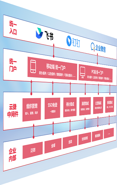 对协作平台提供支持服务,,支持企业应用与协作平台对接,,包含组织同步、、消息集成、、待办集成等。。。支持目前主流的协作平台:钉钉、、企微和飞书。。