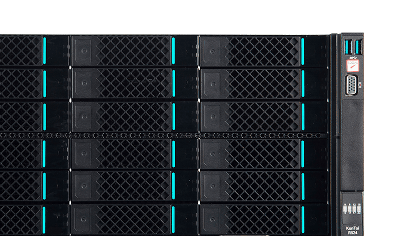 KunTai R524 存储型服务器是壹号平台数码基于鲲鹏处理器推出的新一代 ARM数据中心服务器。。。主要面向存储业务,,,具有海量存储、、、、高性能、、、、低功耗以及易扩展的特点,,,,适合为大数据分析、、软件定义存 储等应用场景的工作负载进行髙效加速。。。